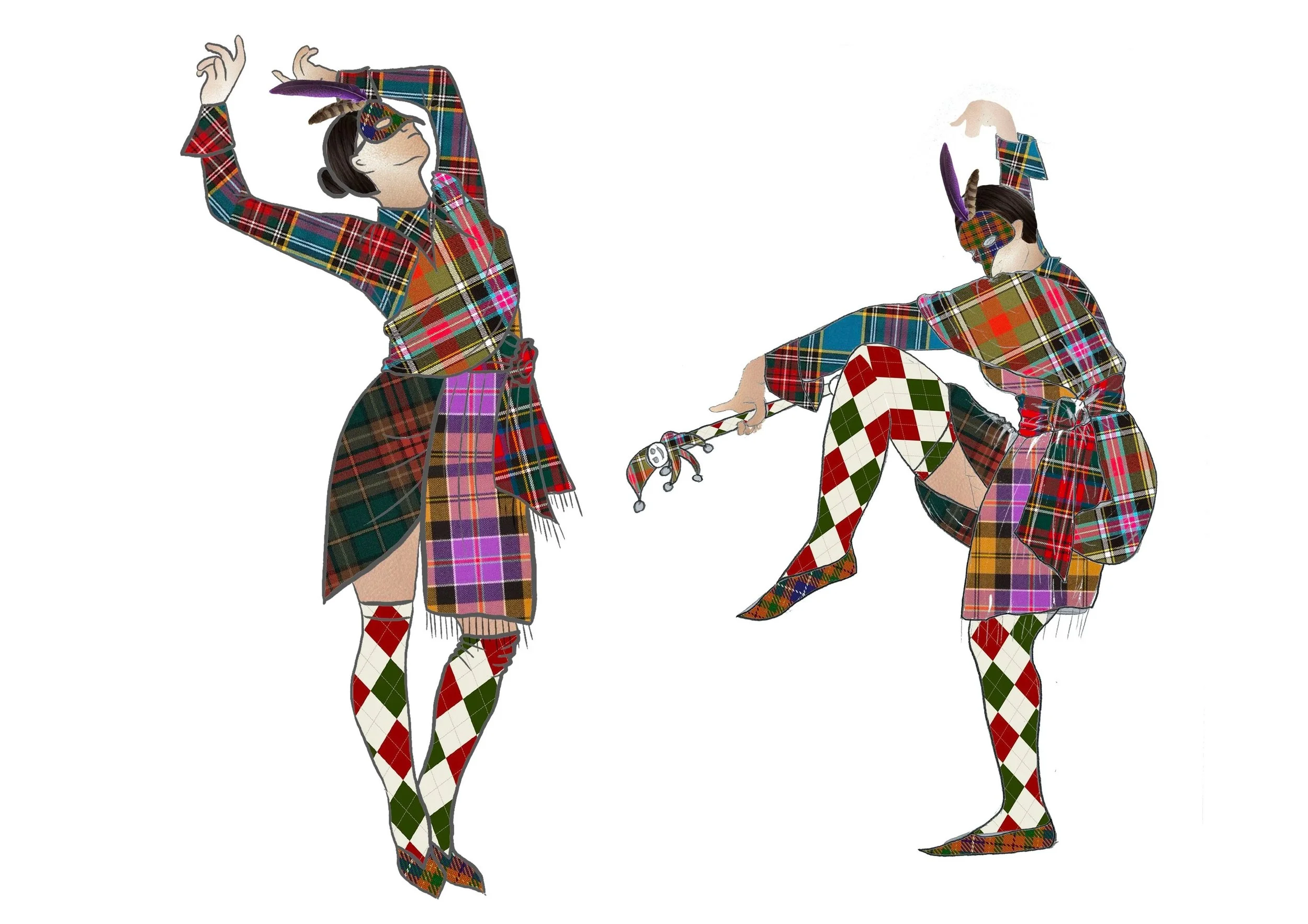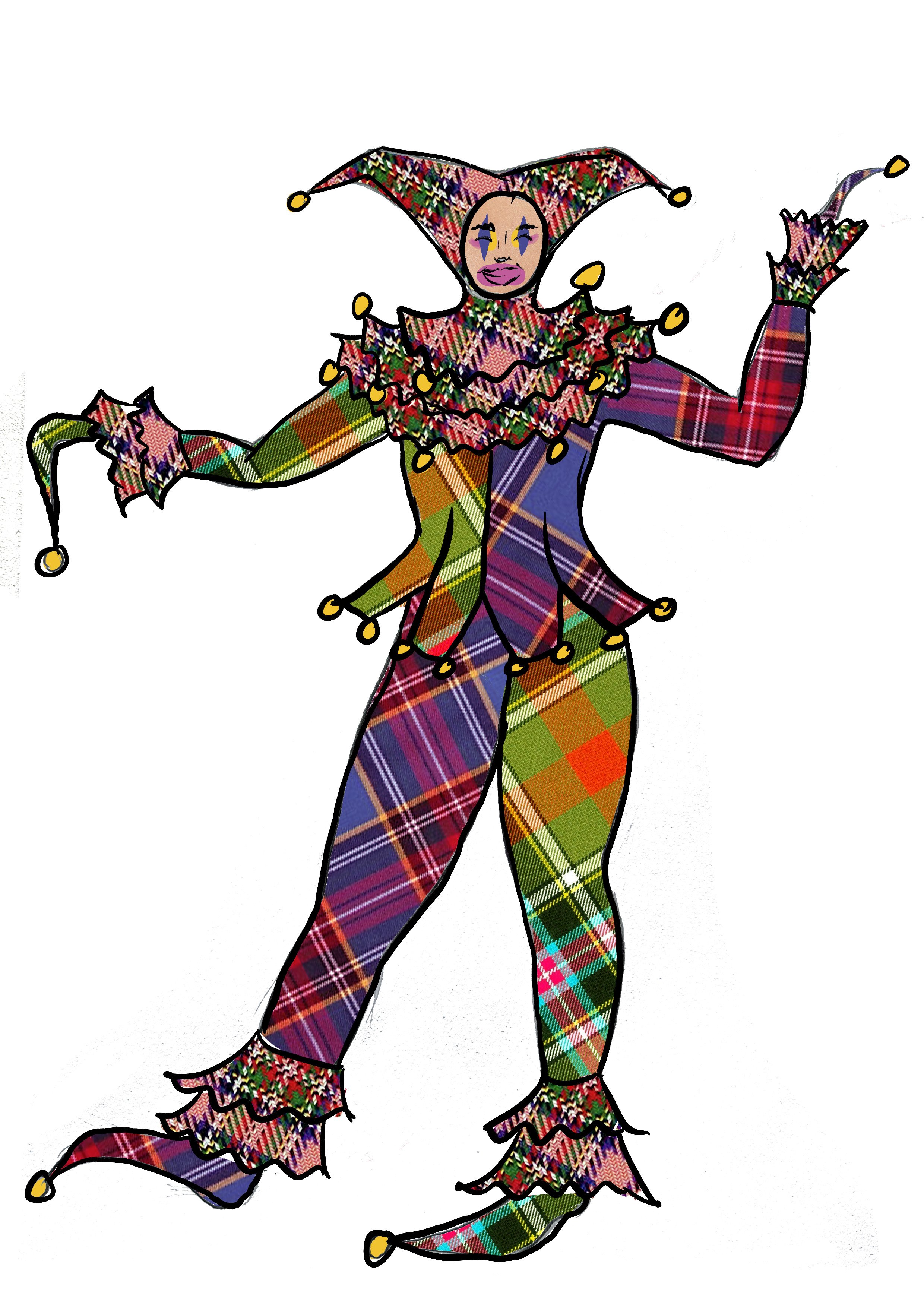 Vivienne Westwood & court jester inspired designs for the Three Witches from Shakespeare’s Macbeth.